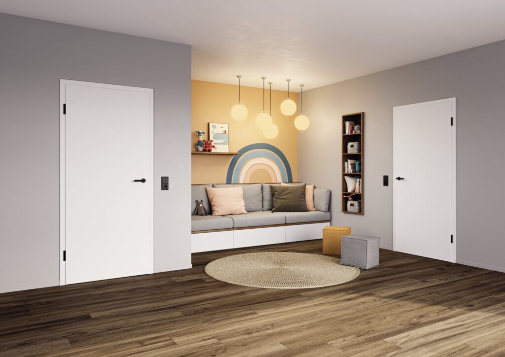 Für den Innenbereich bietet Hörmann Zimmertüren aus Holz als Komplettelement mit Türblatt, Zarge, Beschlagset und Drücker zu Aktionspreisen an. Die Zimmertüren aus Holz verfügen über eine besonders robuste Oberfläche sowie eine stabile Türblatteinlage aus einer Röhrenspannplatte. Die Zimmertür ProLine Duradecor wird mit gefälztem Türblatt in zwei Farben und zwei Dekoren bereits ab CHF 399 angeboten. Als stumpf einschlagendes Element ist die Tür ebenfalls in zwei Farben und zwei Dekoren ab CHF 559 erhältlich.